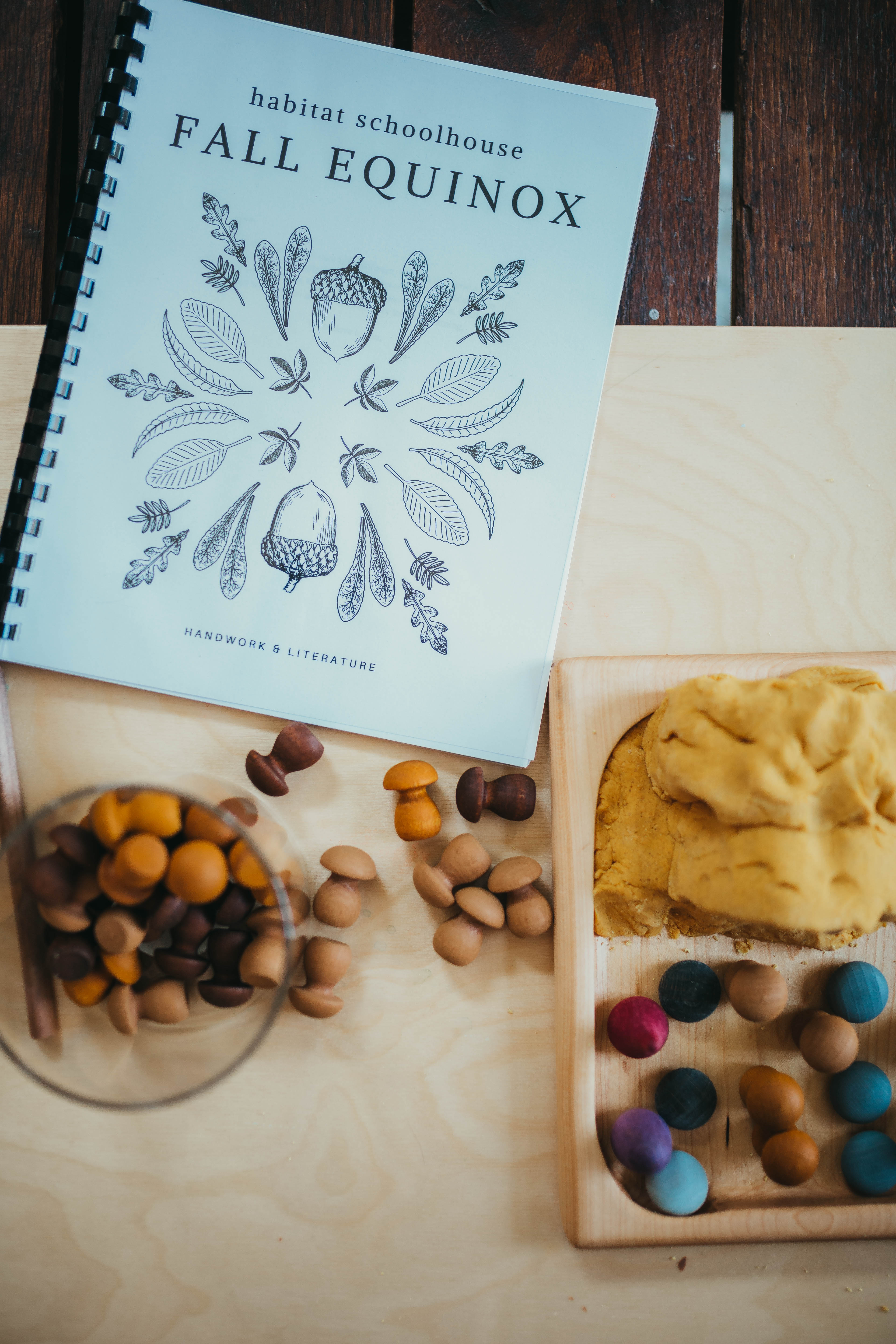 The girls were so excited when I showed them the Autumn Equinox Guide, I printed and binded so we can enjoy together. We went through it and the girls asked to bake, make the moon, and of course make play dough. We made the Playdough first so they could play in their sand trays and enjoy the amazing scent of “Pumpkin Spice” in the color of their choosing. I printed the Apple Project which the girls and I are going to count seeds, replicate the art study, and pracitice some fall vocabulary words!