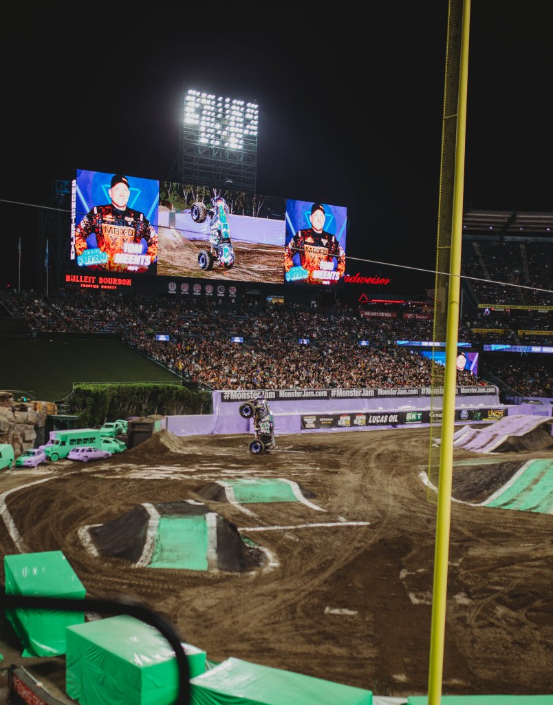 From the racing, best trick and freestyle the excitement was amazing all night long! A huge highlight of the night was watching Monster Mutt Dalmatian driver Jamie Sullivan do a double back flip which was amazing!! Grave Digger driver Tyler Menninga basically won the entire Monster Jam Superstar Challenge! And rightfully so as he was the best of the night. Kennedy was proud to be wearing his colors for the night! Of course we ended the night with giving the girls each a little monster jam truck! They were so excited to have an official Monster Jam Truck! We can’t wait for Monster Jam World Finals XXII to come to SoFi in May 2024!! Stay tuned and I will be sure to share more details!