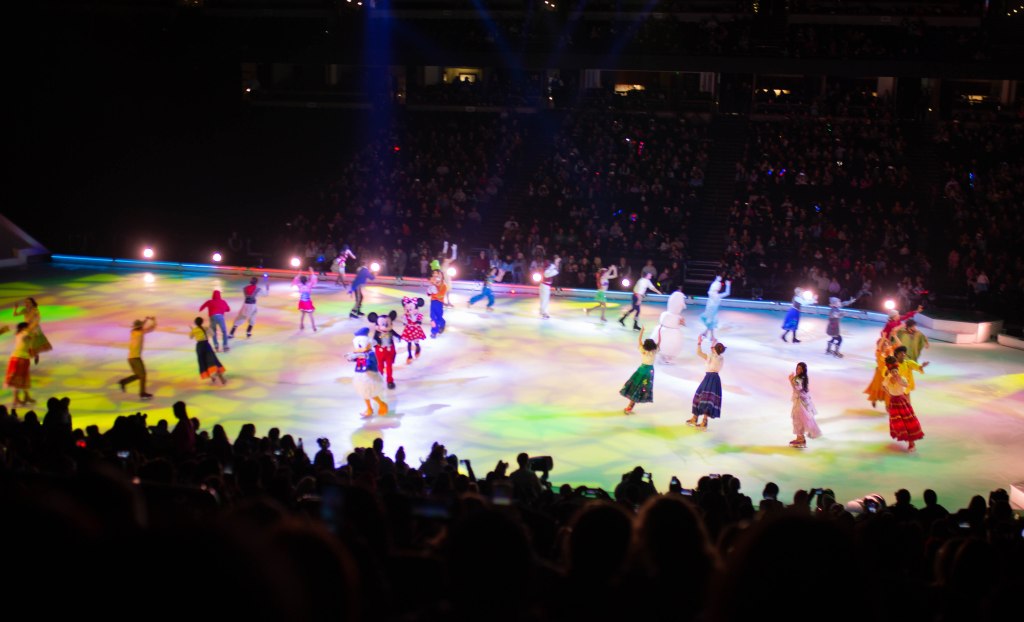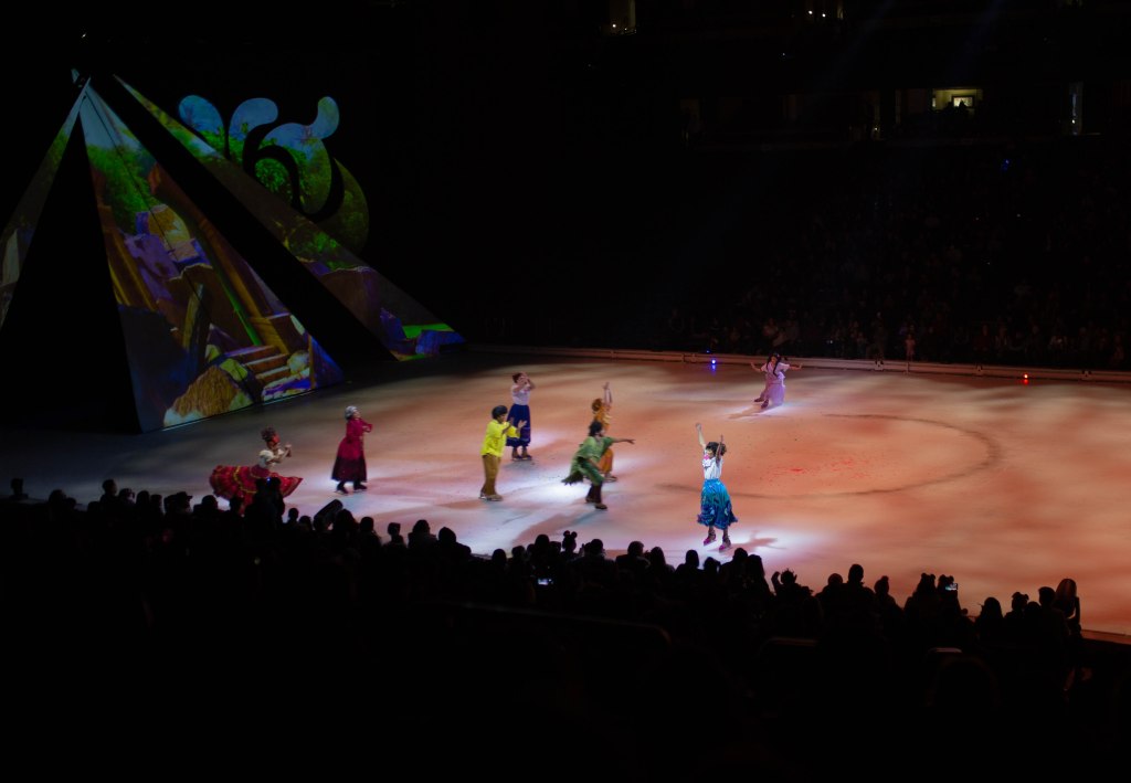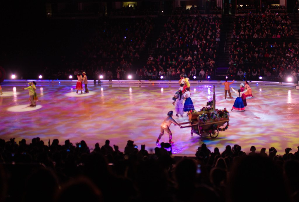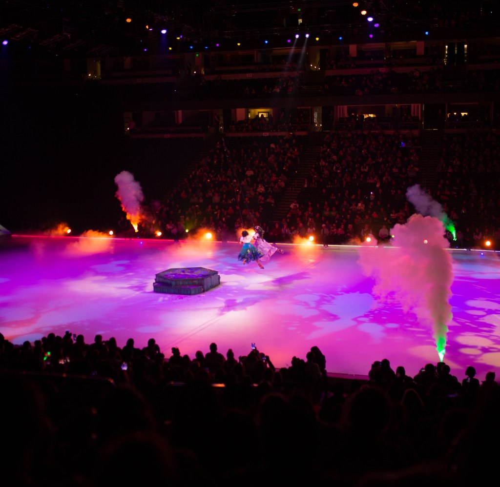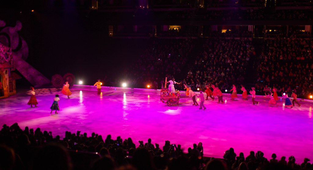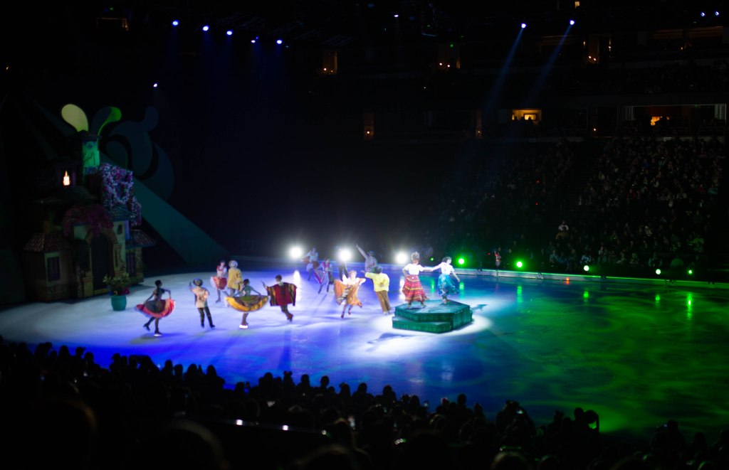The Show started off with Mickey, Minnie and friends to open the show and introduce the story of Frozen! The choreography, the ice skaters, the costumes were absolutely stunning! We first set off to Arendelle where we saw the story of Frozen play out! It was so well put together with all of our favorite songs. From “Do You Want to Build a Snowman”, “Let it Go” to “In Summer” by Olaf! The dancing and Ice skaters really brought this song to life and it was vibrant and warm which was cool because we were in an Ice Rink! After Frozen wrapped up we went to a short intermission and stretched our legs.