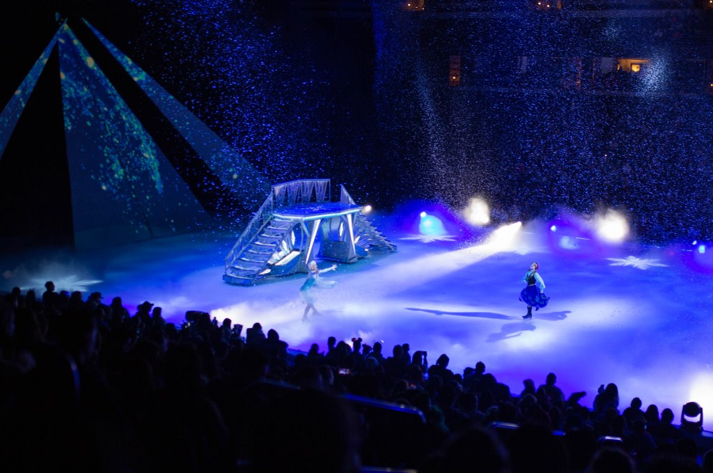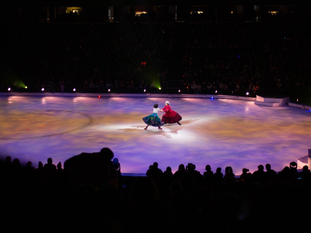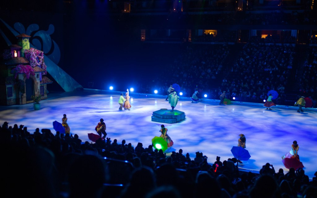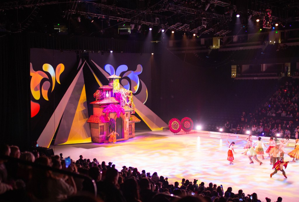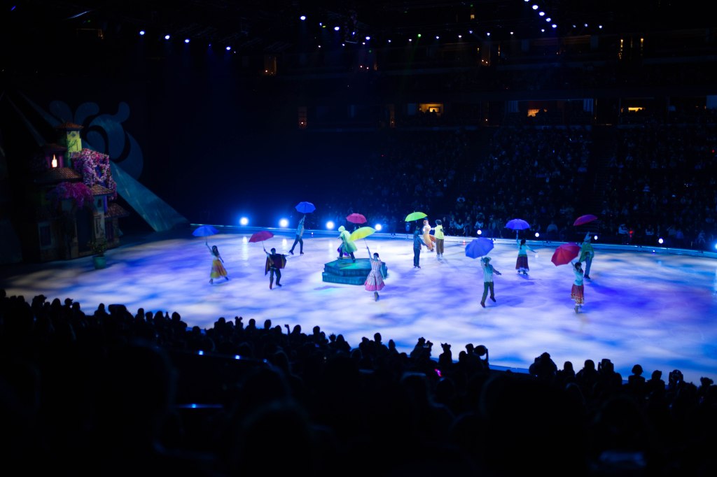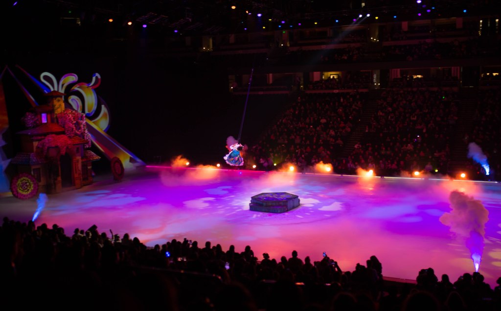 The Show started off with Mickey, Minnie and friends to open the show and introduce the story of Frozen! The choreography, the ice skaters, the costumes were absolutely stunning! We first set off to Arendelle where we saw the story of Frozen play out! It was so well put together with all of our favorite songs. From “Do You Want to Build a Snowman”, “Let it Go” to “In Summer” by Olaf! The dancing and Ice skaters really brought this song to life and it was vibrant and warm which was cool because we were in an Ice Rink! After Frozen wrapped up we went to a short intermission and stretched our legs.