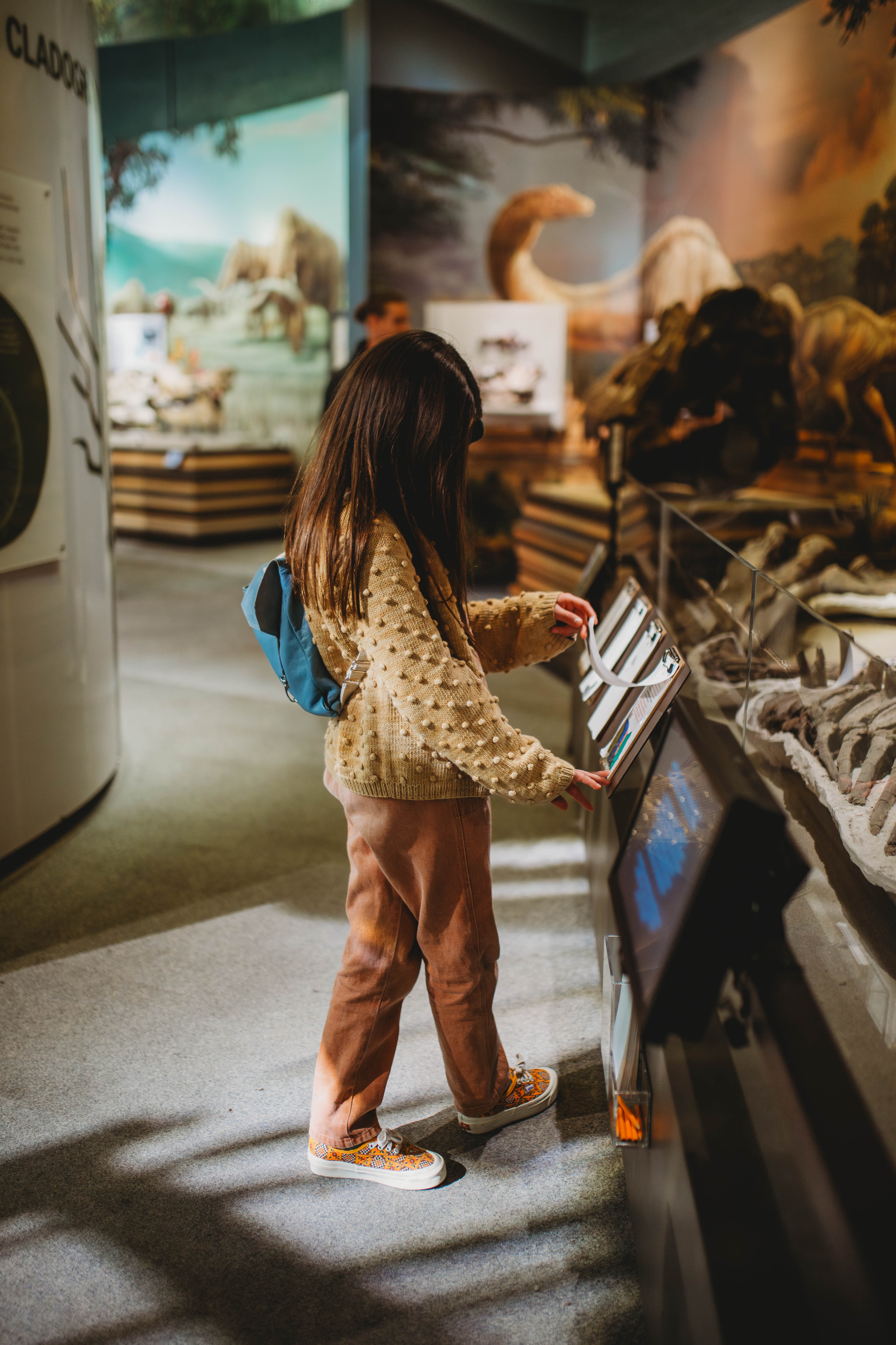 The other hall is the “Hall of Footprints” this hall I found fantastic for Kennedy! Kennedy in the early school year studied the early days of California, which this hall had many things from that era. Tracks found in Mojave Desert, to bear-dog and camels! This is the floor you can see the fossil preparation lab and a collections storage room, through windows cut into the walls. They told us during the week they are in there working and on event days. So we have to come back.