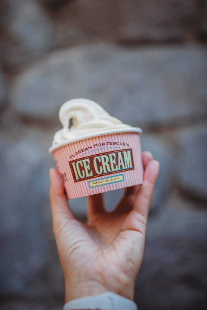 First let’s talk about “Potted Cream” which can be purchased inside The Three Broomsticks. You can also buy assorted Butterbeer drinks but this is the spot to get your hands on the coveted little cream. The Potted Cream is like pudding with a dallop of whip cream. The cream is smooth and vanilla like in flavor with hints of dare I say caramel. Either way for $5.99 this is on that shouldn’t be missed.