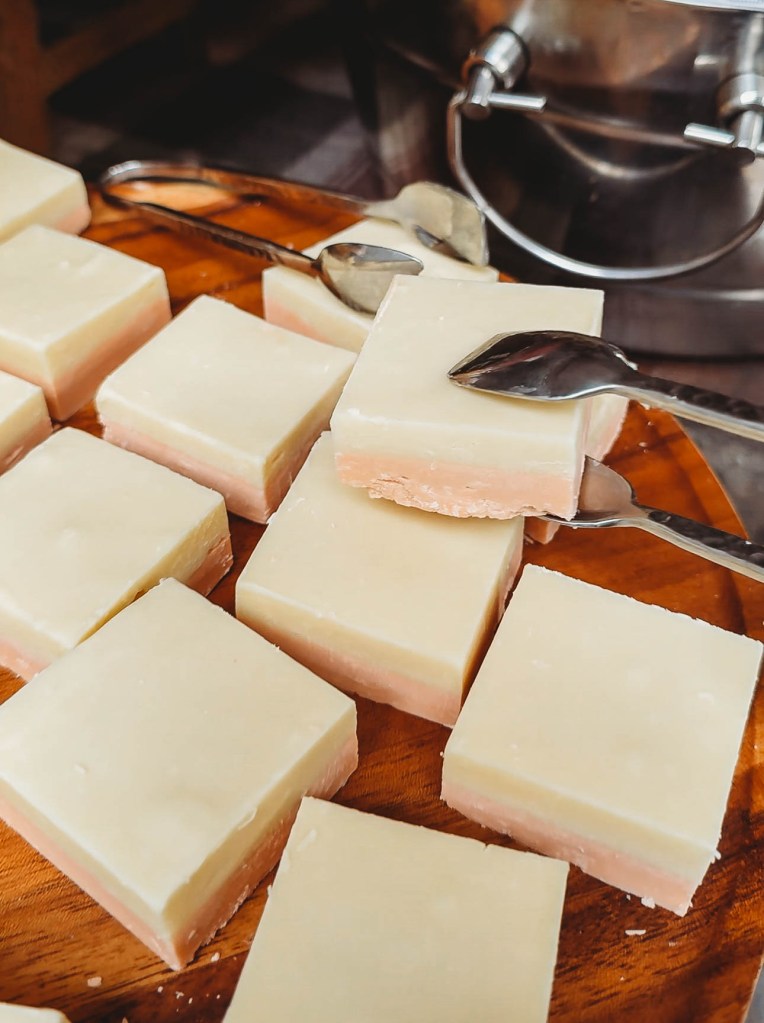 You have to enter the infamous Honeydukes and you will walk up to the counter where there are manyyyy delicious items but the key item here is the “Fudge”!! The case of goodness had a few things I wanted but what caught my eye was the “Cauldron Cake” with the flames made of frosting! Like stahhhhp! Must have!
