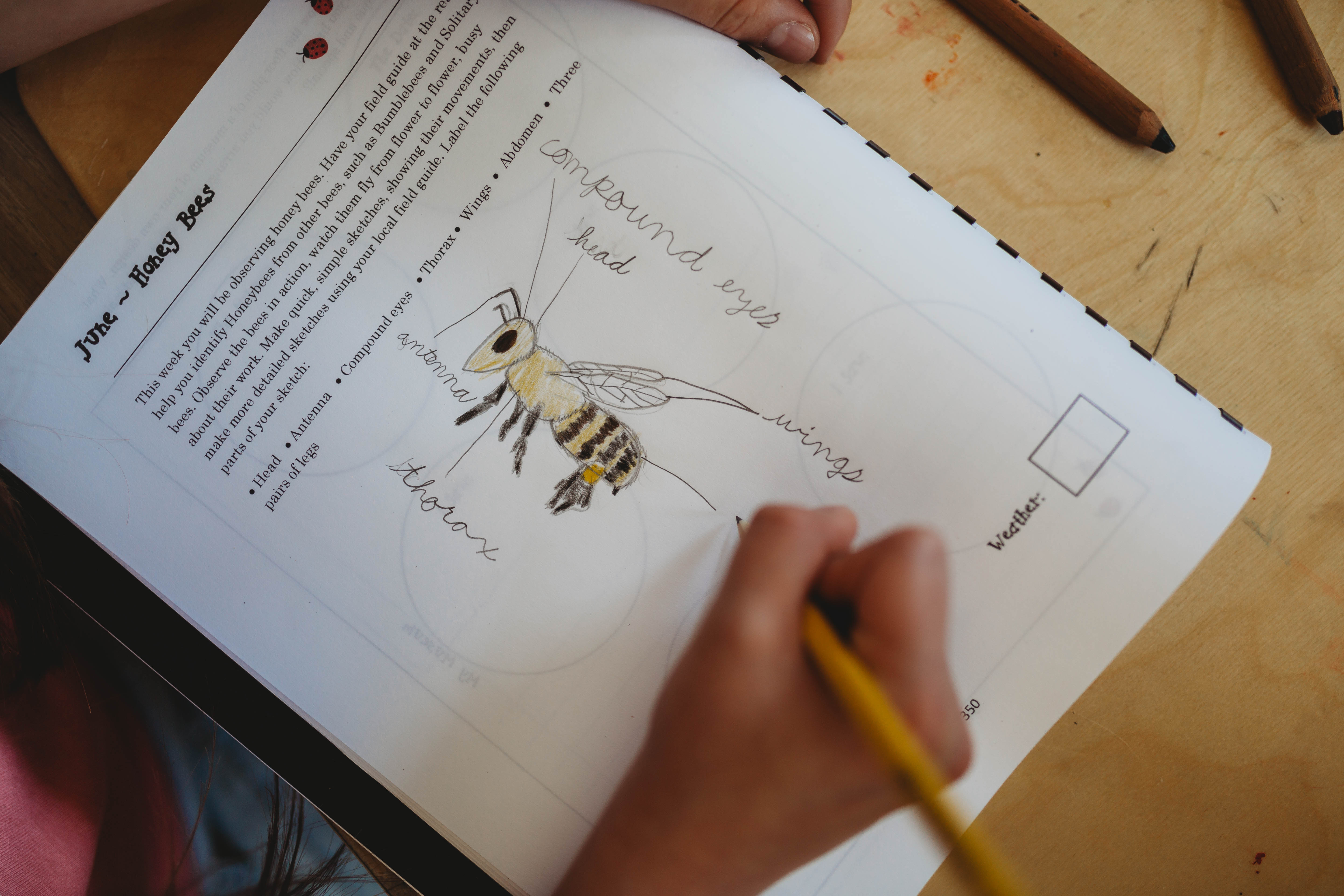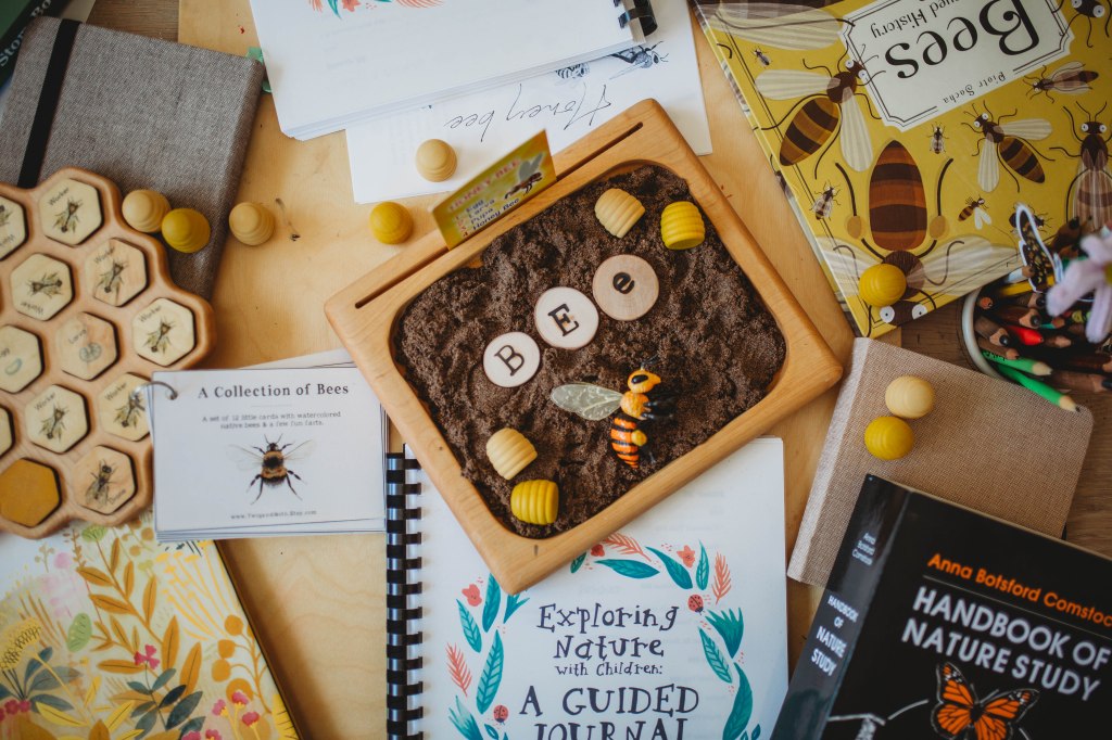 There is a schedule to follow and for week 2 of June in the Summer section we studied “Bees”!!!! Bees are such a huge part of our entire world without them we wouldn’t exist. Here are some glimpses of our Bee Study and how I set up our table and we work together. It’s been a real treat to watch as the girls grow and become more intricate with their work. They grasp more concepts over the years and we really go in depth with each subject.