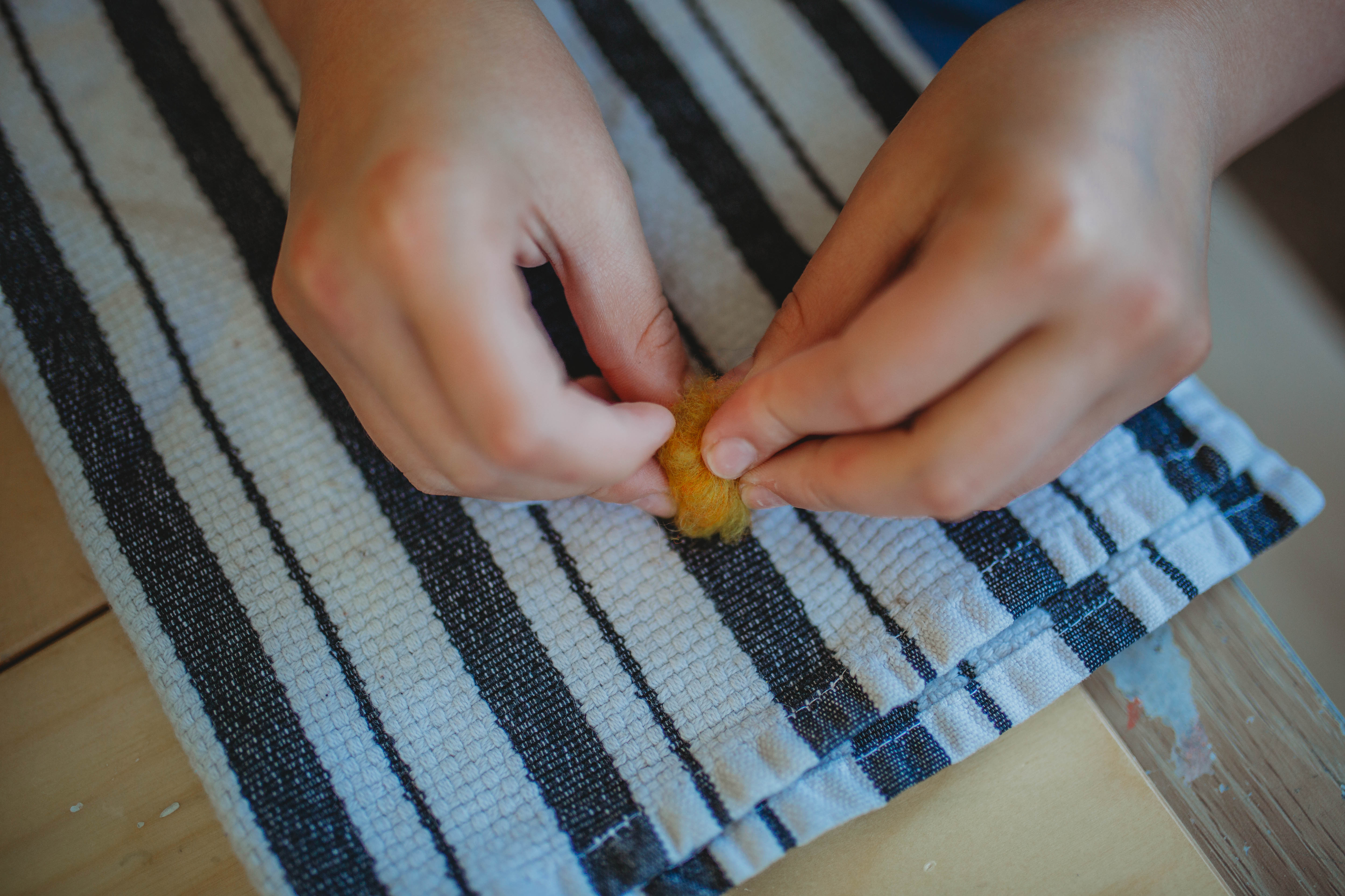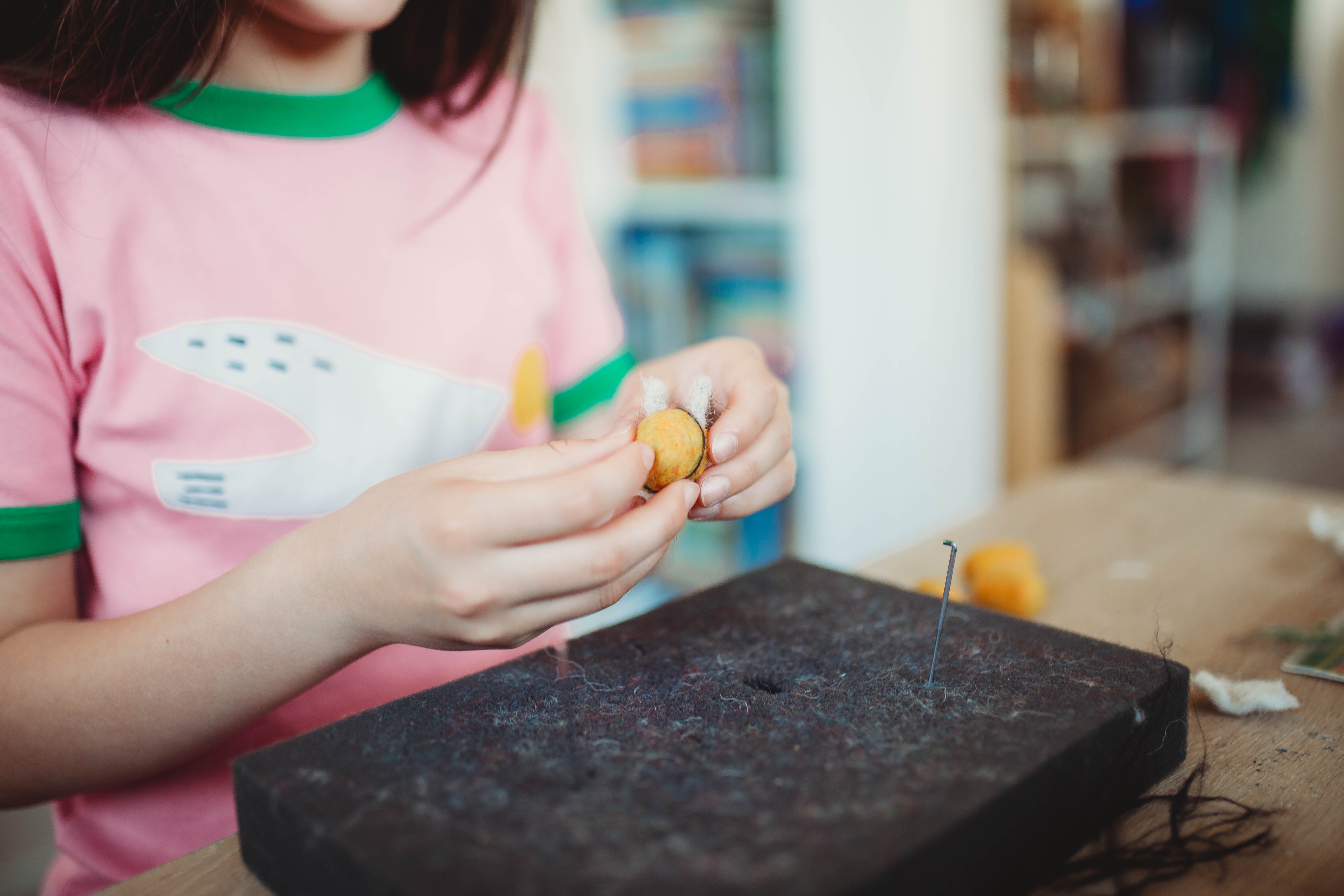 These little bees are a great way to introduce handwork to your kids and for yourself. Handwork has so many benefits from cognitive, therapeutic, motor skills, and the rhythm creates a sense of unwind so your child can relax and focus. There is a huge commitment in tapping these little balls into existence. If your child doesn’t last you get to do the rest and trust me you will find so much joy in just sitting and tapping and rolling!