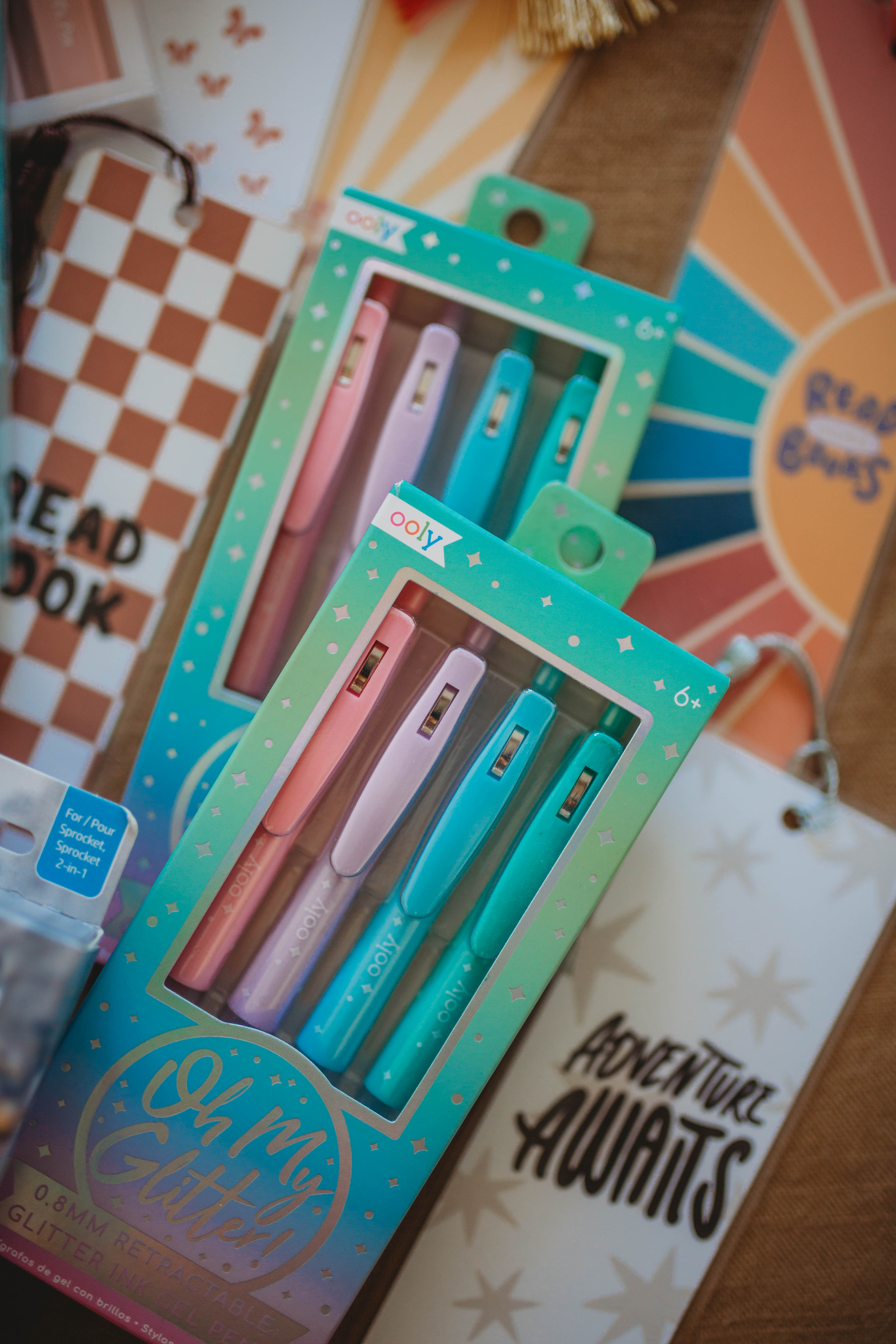 – Oh My Glitter! Retractable Gel Pens – Set of 4 from Ooly. What little girl doesn’t love a glitter pen? (I mean so do I)