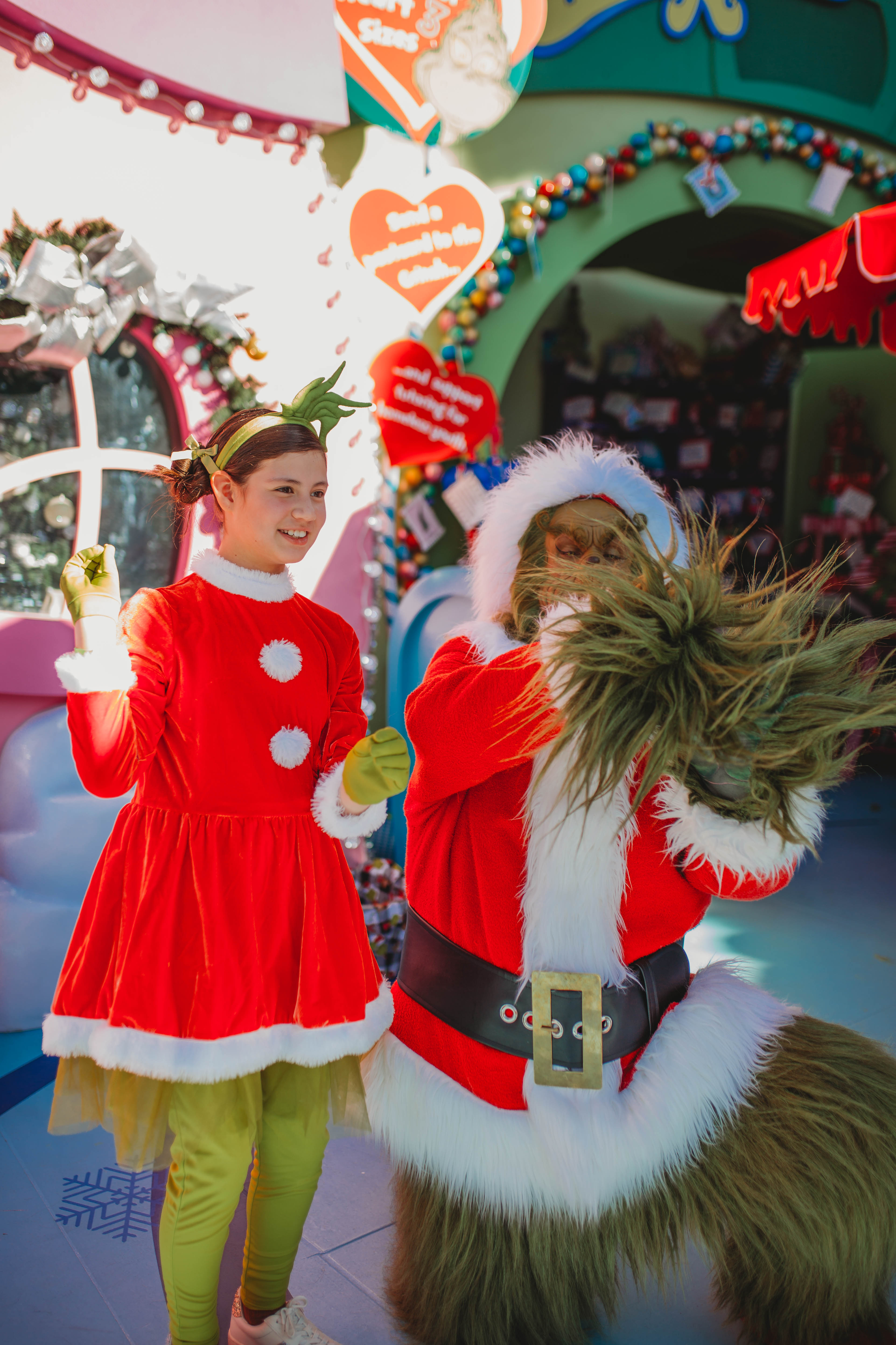 When walking into Who-ville you cant miss the towering 65-foot-tall Grinchmas tree! Adorned with lights, ornaments and a snow fall when it comes to life in the evening. We will return to see it, this weekend! It’s absolutely beautiful.